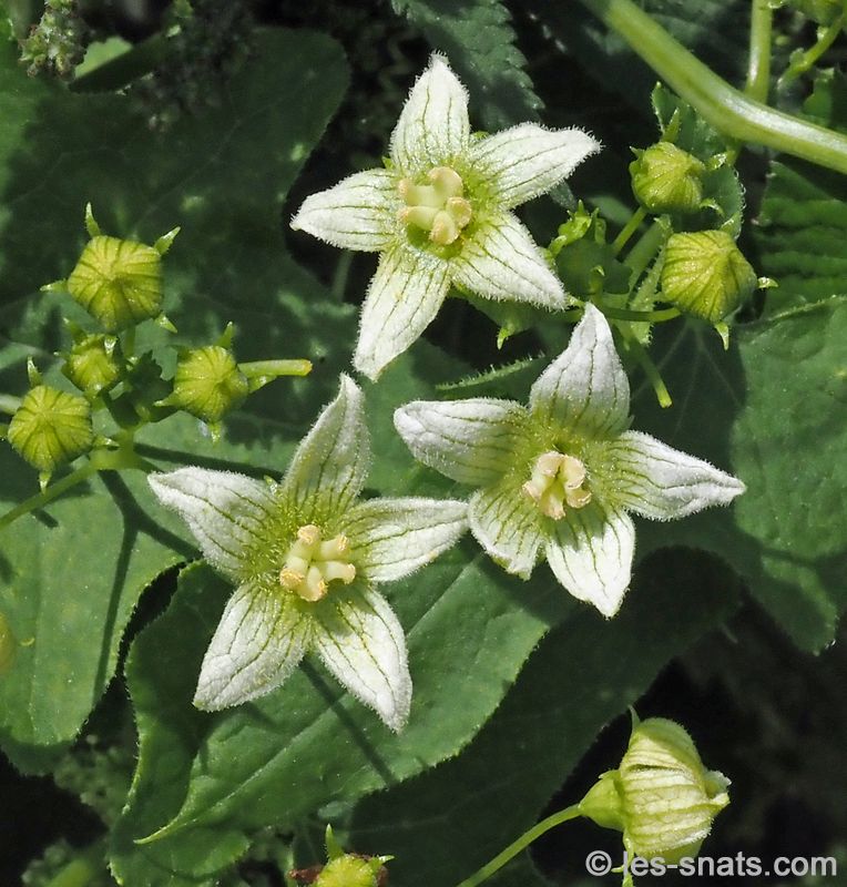 Autres nom francais : Fausse Coloquinte; Herbe de feu; Navet du Diable; Rave de serpent; Vigne blanche